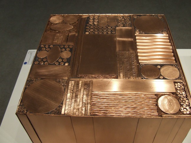 The interplay that occurs between the three and two dimensional expressions of copper reveals the patterns that are inherent in both the two approaches of representing copper visually when one views the work Ode to Boetti in relation to its three dimensional counterpart as well as the work Ode to Cable in relation to the middle cube which relates to it.