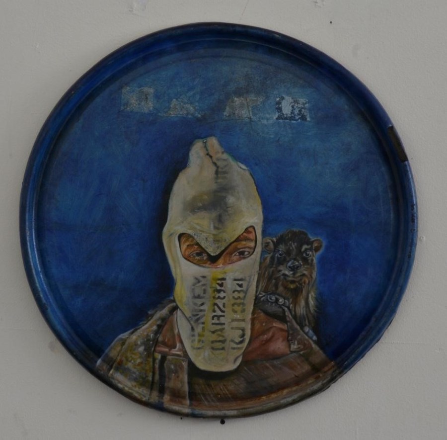 Figure 1. Sello Letswalo. MoRussia II (2021). Mixed Media on steel Drum lid 60 cm Radius without Steel frame