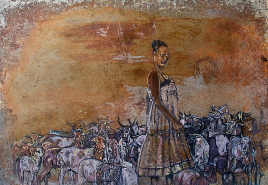 Figure 4. Figure 3. Sello Letswalo Mma Dikgomo (The Mother of the cattle) 2022. 111 x 66 cm. Mixed Media on steel