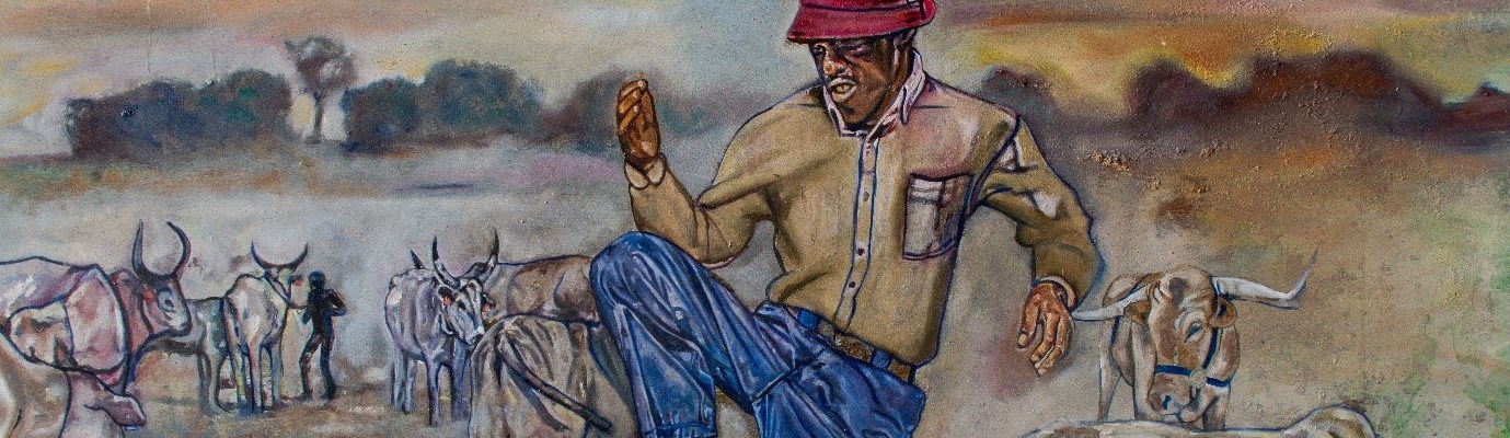Mmutle Arthur Kgokong. Lastly, in the work that comprises the body of work submitted to Trent Gallery for Paint on Steel Exhibition, Cattles, Dikgomo, dominates – due to the symbolic nature of your work, what is the meaning of this animal within these compositions?