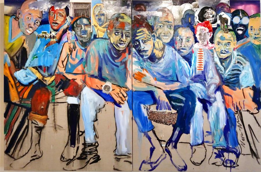 > Nelson Makamo's exhibition Maru Ke ao a tla le Pula which is on at BKhz is a techinically pleasing exhibition to see for anyone who has followed Makamo over the years. There were some pieces which I could not help but associate with the proprietor of the space wherein this artist's latest offering has been installed. I hope it is an error on my part and that there is no collaboration whatsoever between the two artists. If there was it wouldn't be an issue. Actually it would have perhaps been a feat to propel this exhibition deeper into the art interested public. There is just one work which really opened up possible vista's for me, see image[1] below in this section.