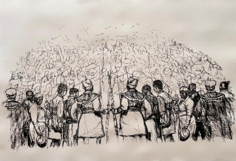 Selekane’s Murmurs of Migration may refer to migration by its title but to a large extent, what the work is about, is a celebration of women and their role in our multifaceted society. Some of the works featured in this exhibition betray this observation, however, these works, whether paintings or prints carry other concerns that preoccupy the artist such as youth and unity in the community whether social or religious. In its collective communication, Murmurs of Migration seems to implore us to consider another form of migration. Another form of journeying. That is the journey of self-discovery through our interaction with others. This is quite befitting in a world caught up in a whirlpool of abandonment and alienation despite our shared space and time.