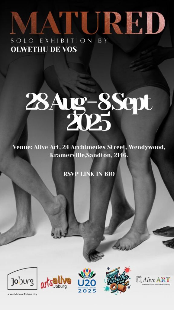 [Hi], old friends and new friends, it is great to have you here. Olwethu de Vos, curator and multi-media artist who is conversant with two-dimensional pieces that defies flatness mixed media and sculpture, will unveil a solo project in collaboration with the City of Joburg, Matured, on 28 August 2025. Visiting her Instagram account @odeforceart, you will notice a couple of snippets of the upcoming exhibition, one of them a short reel of her working on a sculpture, presumably one of the works to be featured in her upcoming show. Matured is timeous in the light of the upcoming FNB Joburg Art Fair and it slots snugly into the fair’s, for lack of a better adjective, ‘side tapestry’, Open City.